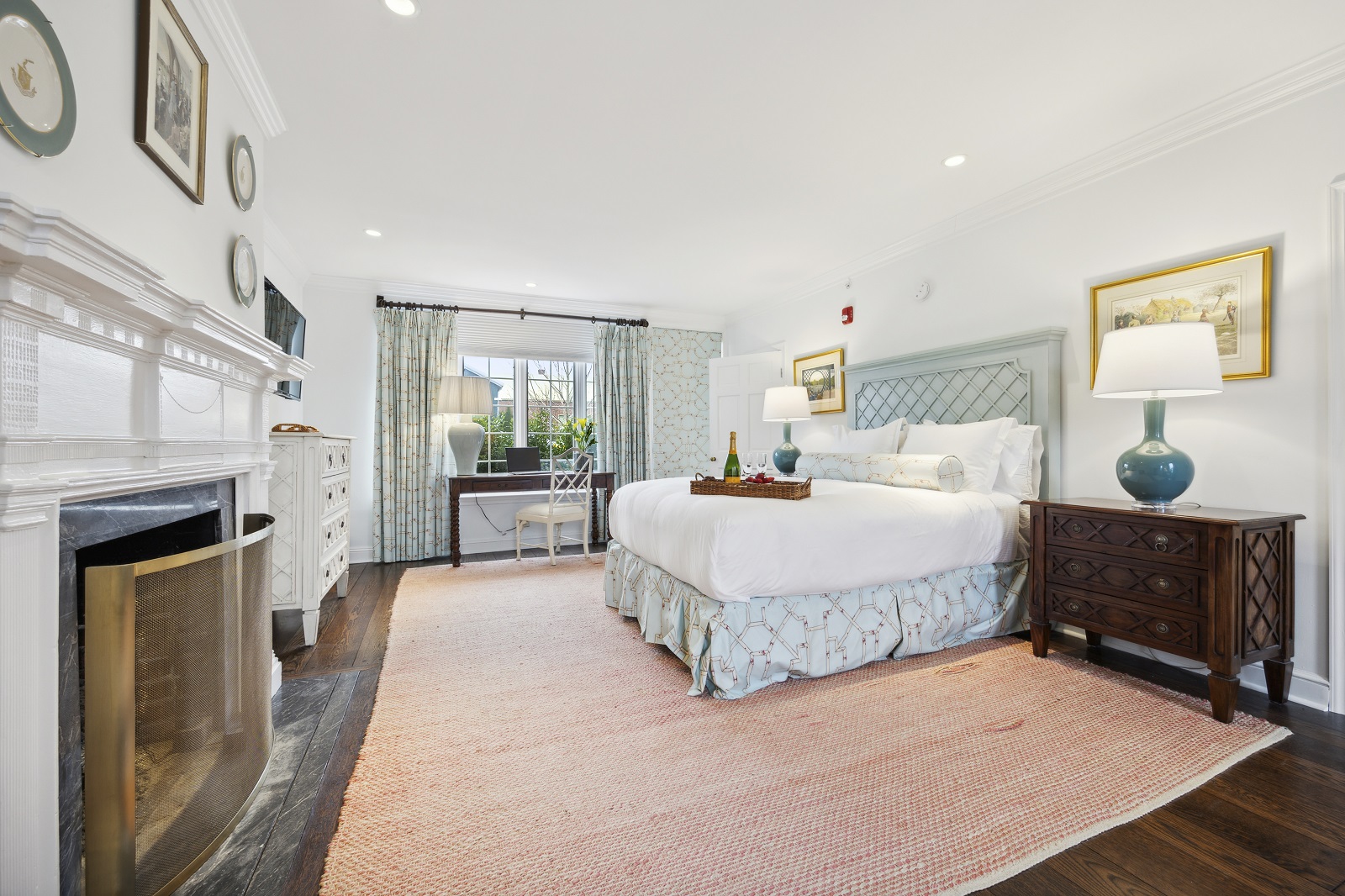 Queen Bed | Ensuite with Shower and Bathtub | Fireplace The second of two creatively designed suites is located on the second floor. Featuring garden floral designs with pistachio-colored accents and aged honey mahogany furnishings, it is the perfect blend of timeless charm. This suite features a queen-sized bed, custom furniture and décor, a sitting area, fireplace, and a smart television. The ensuite bathroom features a classic style with a bathtub, separate standing shower and terry cloth robes for your comfort.